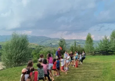 Așadar în tabere practicăm și răbdarea la pachet cu responsabilitatea și controlul. Totul într-un mediu plin de joacă și veselie. În fiecare zi proprietatea răsună de strigătele de încântare ale copiilor care sunt angrenați în jocurile copilăriei – Țară, țară, vrem ostași, Rațele și vânătorii etc. Uite aici o secvență – https://youtube.com/shorts/CXjxwk3DZJ0